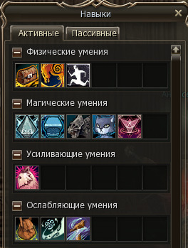 В Lineage все умения разделены на 4 вида: