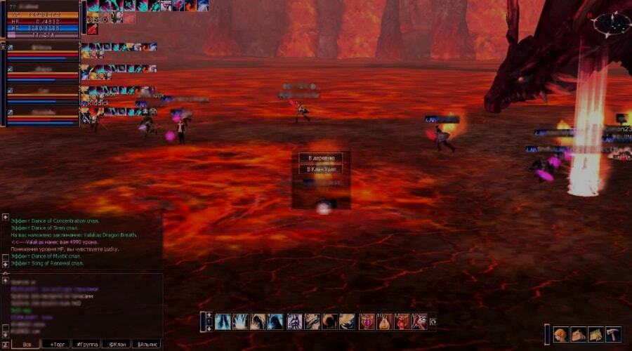 Состав пати для фарма – преимущественно маги. Так же необходима пати танков – чтобы водить валакаса и пати супорта с Mana Burn – для постоянного выжигания маны, тогда валакас не будет ваншотить вас с 1 падачи.