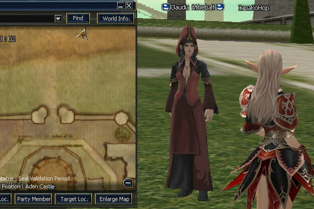 3.Возвращаемся в Aden и бежим на поляну перед замком, там по стрелке находим Claudia Athebaldt.